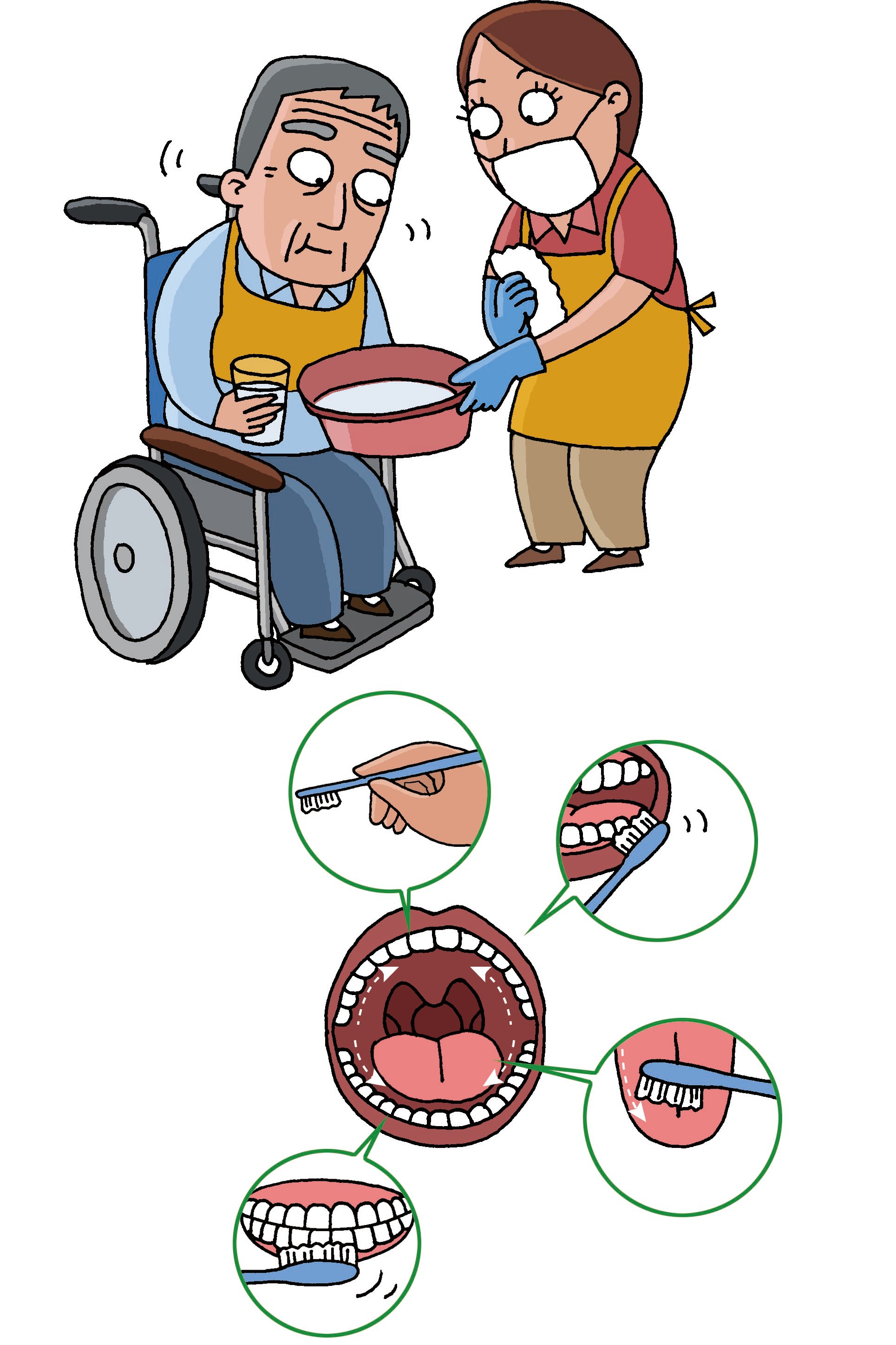 清洁口腔、去除牙垢、调整假牙等减少口腔内细菌的努力,不但可以预防误咽性肺炎乃至身体其他疾病,也能提高患者的生活品质。