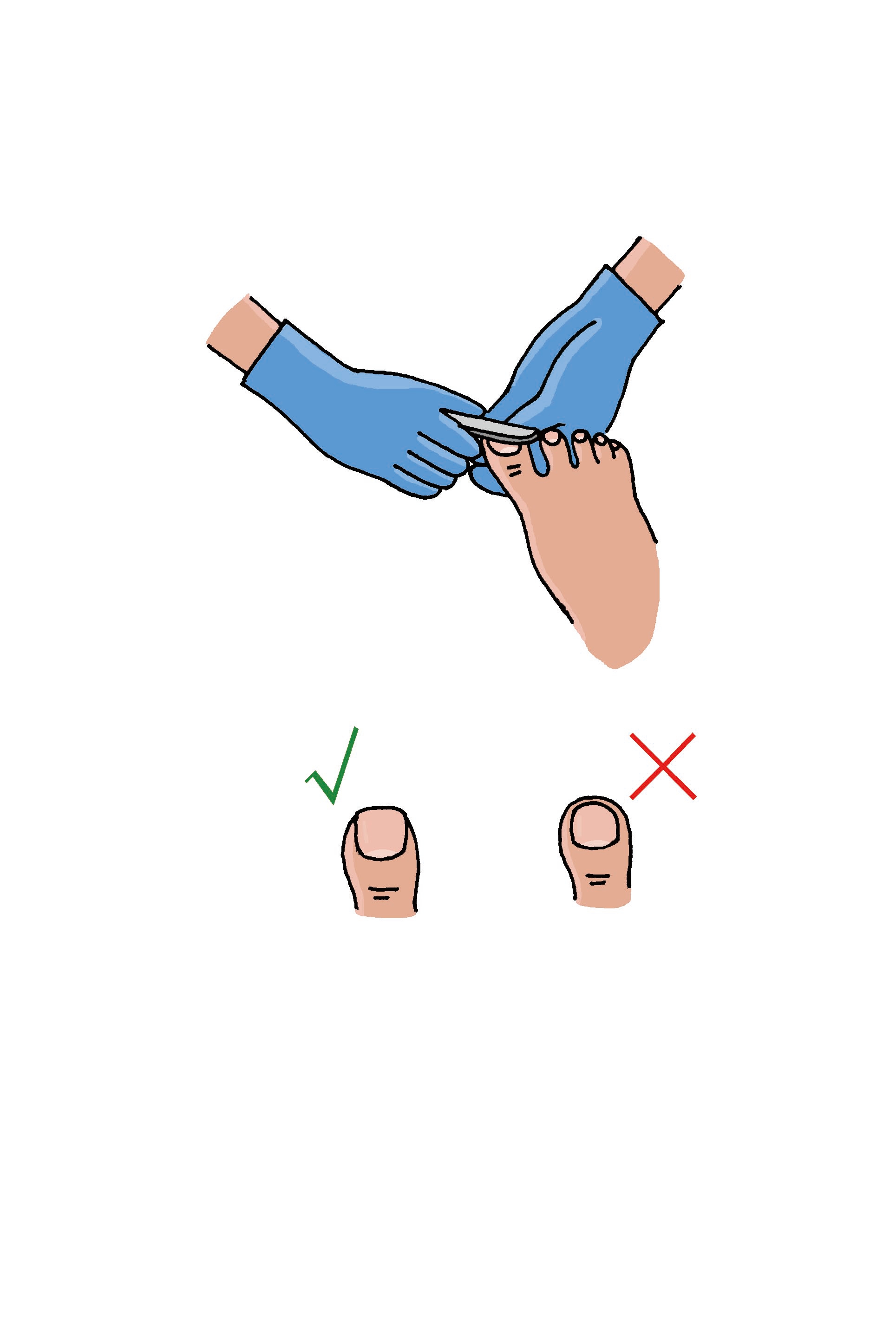 要注意指甲角剪成圆角,把指甲剪到肉里容易形成嵌甲,但任由指甲长长会引起跌倒受伤,因此要勤剪指甲。
